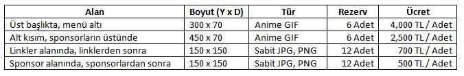 www.tkkkf.com web sitemize reklam komunlandırılacaktır. Reklam için ayrılmış alanlar “R” ile belirtilen kutucuklar halinde belirtilmiştir. Anime GIF (hareketli video içerikli) veya JPG, PNG (sabit içerikli) dosya türünde gösterimi yapılacak, tıklandığında istenilen bir internet adresine yönlendirme olacaktır.