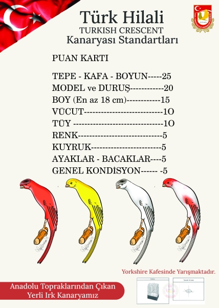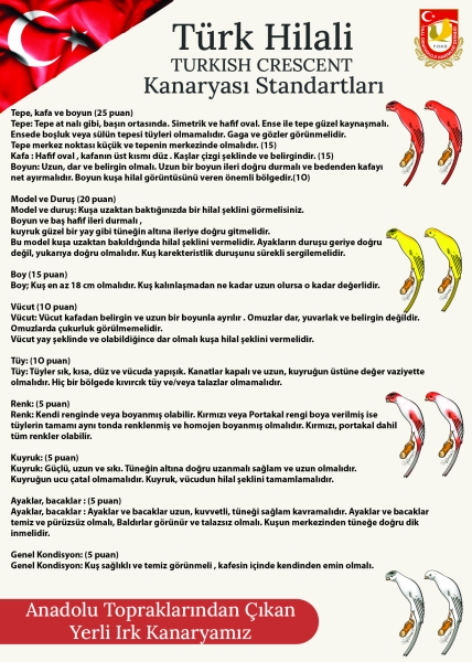 Türkiye Faal Ornitoloji Hakemleri Derneği tarafından hazırlanan Türk Hilali Kanaryası Yarışma Standartları.
