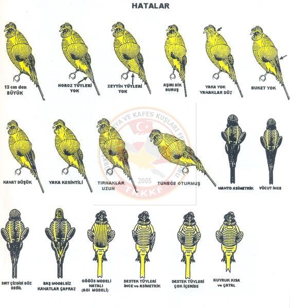 Çok sağlıklı, temiz olmalı kendini kafeste güzel sergilemelidir. Bütün renkleri görülebilir. |